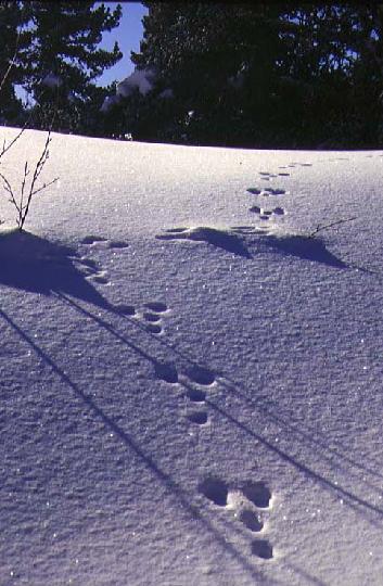 Leurs empreintes ressemblent à un "Y", les pattes postérieures formant l'avant de l'empreinte. En effet, lors des sauts, les pattes de devant sont repliées sous le poitrail et touchent la neige en dernier.