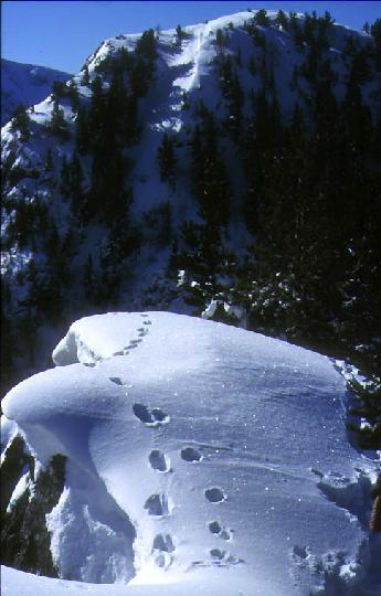 Notez qu'une trace de chamois de quelques jours, déformée par les successions de gels et de dégels, peut rapidement prendre la taille d'une trace fraîche de bouquetin.