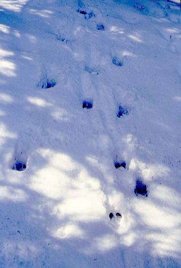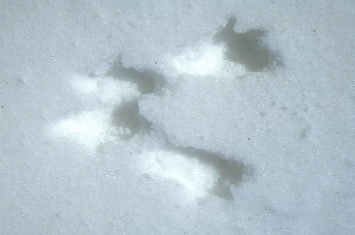 Leurs empreintes ressemblent à un "Y", les pattes postérieures formant l'avant de l'empreinte. En effet, lors des sauts, les pattes de devant sont repliées sous le poitrail et touchent la neige en dernier.