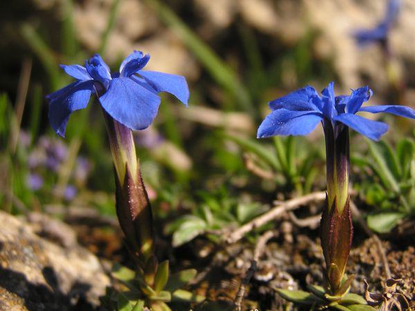 Beaucoup de gentianes fleurissent en juin entre 1600 et 1900 mètres. Les premières sont de petites gentianes d’un bleu éclatant, les gentianes printanières. On les verra surtout dans les prairies au pied du col de Balme.